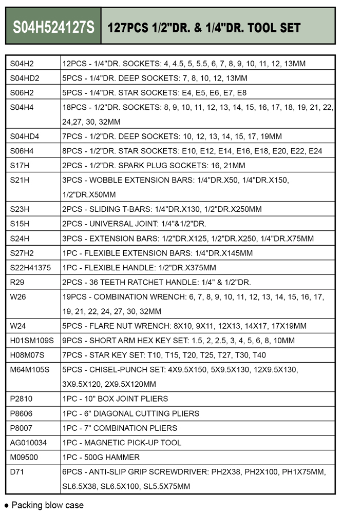 127PCS 1/2" DR. & 1/4" DR. TOOL SET