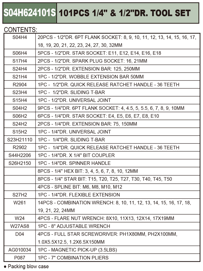 101PCS 1/4" & 1/2" DR. TOOL SET