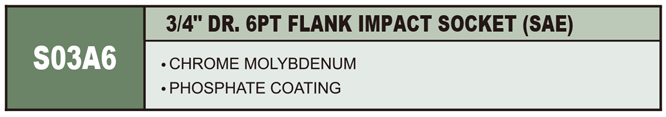 3/4" DR. 6PT FLANK IMPACT SOCKET (SAE)