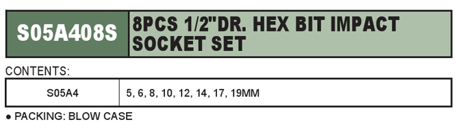 8PCS 1/2"DR. HEX BIT IMPACT SOCKET SET