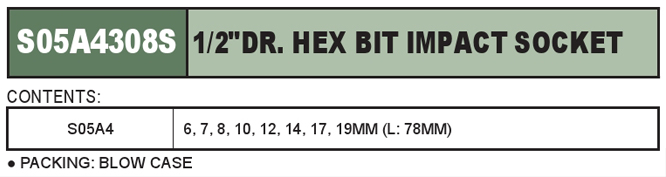 1/2"DR. HEX BIT IMPACT SOCKET (L:78MM)