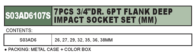 7PCS 3/4" DR. 6PT FLANK DEEP IMPACT SOCKET